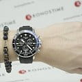 Наручные часы отличаются спортивным дизайном, прослеживается дайверская тематика, чему способствует и водонепроницаемость при давлении 30 бар на глубине 300 метров. Кварцевый механизм ETA G10.212. Сапфировое стекло с антибликовым покрытием. Завинчивающаяся заводная головка и задняя крышка. Люминесцентная подсветкаЛюминесцентное покрытиеПозволяет считывать показания времени в темноте. Производители наносят на стрелки, часовые индексы, безель или поверхность циферблата светонакопительный состав, дающий холодное свечение.. Черный каучуковый ремешок. Секундомер, хронографХронографФункция позволяет измерять отрезки времени с особой точностью: часы, минуты, секунды. Верным признаком хронографа является наличие на циферблате 3 дополнительных окошек-счётчиков., календарь. Габариты: 45 x 45 x 12,8 мм.