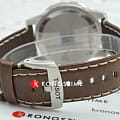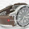 Коричневый кожаный ремешок подчёркивает классический стиль и оснащён удобной застёжкой. Водонепроницаемость 100 метров делает модель подходящей для плавания и активного образа жизни.
