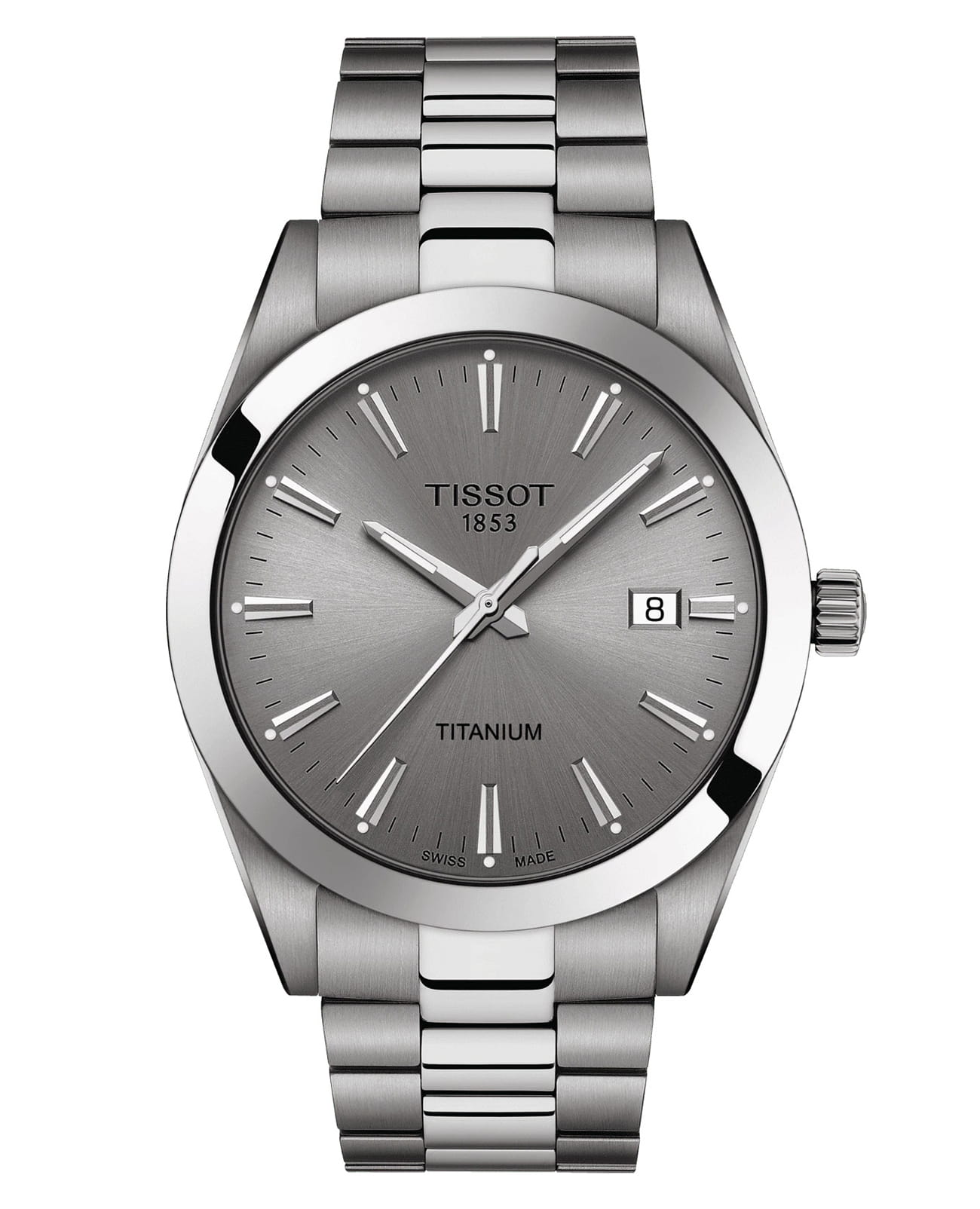 Мужские кварцевые часы Tissot Gentleman Titanium T127.410.44.081.00 — это стильный аксессуар, сочетающий в себе элегантность классики и передовые технологии. Модель выполнена из титана с диаметром корпуса 40 мм и толщиной 8,52 мм, что делает её прочной, лёгкой и устойчивой к коррозии. Циферблат серебристого цвета дополнен метками в виде штрихов, а его поверхность защищена сапфировым стекломСапфировое стеклоПрочный и надёжный материал из кристалла сапфира синтетического происхождения, характеризующийся особой твёрдостью и устойчивостью к царапинам и повреждениям. с выпуклой формой, устойчивым к повреждениям. Защиту механизма обеспечивает антибликовое покрытиеАнтибликовое покрытиеСлой оксида металла в 0,13-0,3 микрон, благодаря которому стекло часов не бликует и не отражает свет. Антибликовое покрытие уменьшает отражение света в 10 раз, обеспечивая отличную читаемость показателей циферблата., уменьшающее блики при освещении. Окошко даты расположено в положении 3 часов, а рифлёная заводная головка обеспечивает надёжную фиксацию на запястье. Часы оснащены кварцевым механизмом ETA F06.115, обеспечивающим точную работу и минимальное обслуживание. Функция индикации заряда (EOL) позволяет контролировать состояние батарейки. Браслет из титана шириной 20 мм оснащён Застёжка "бабочка"Застёжка "бабочка"Такой вид застёжки дополняется предохранителями, помогающими избежать случайного раскрытия браслета. Обладают изящным исполнением. , обеспечивающей комфорт и надёжную фиксацию на запястье. Водонепроницаемость позволяет использовать модель при плавании и других водных активностях без глубокого погружения. Гарантия 24 месяца подтверждает качество и долговечность изделия. Эти часы станут универсальным аксессуаром для тех, кто ценит сочетание стиля, функциональности и швейцарского мастерства — идеальный выбор для повседневной носки и активного образа жизни.