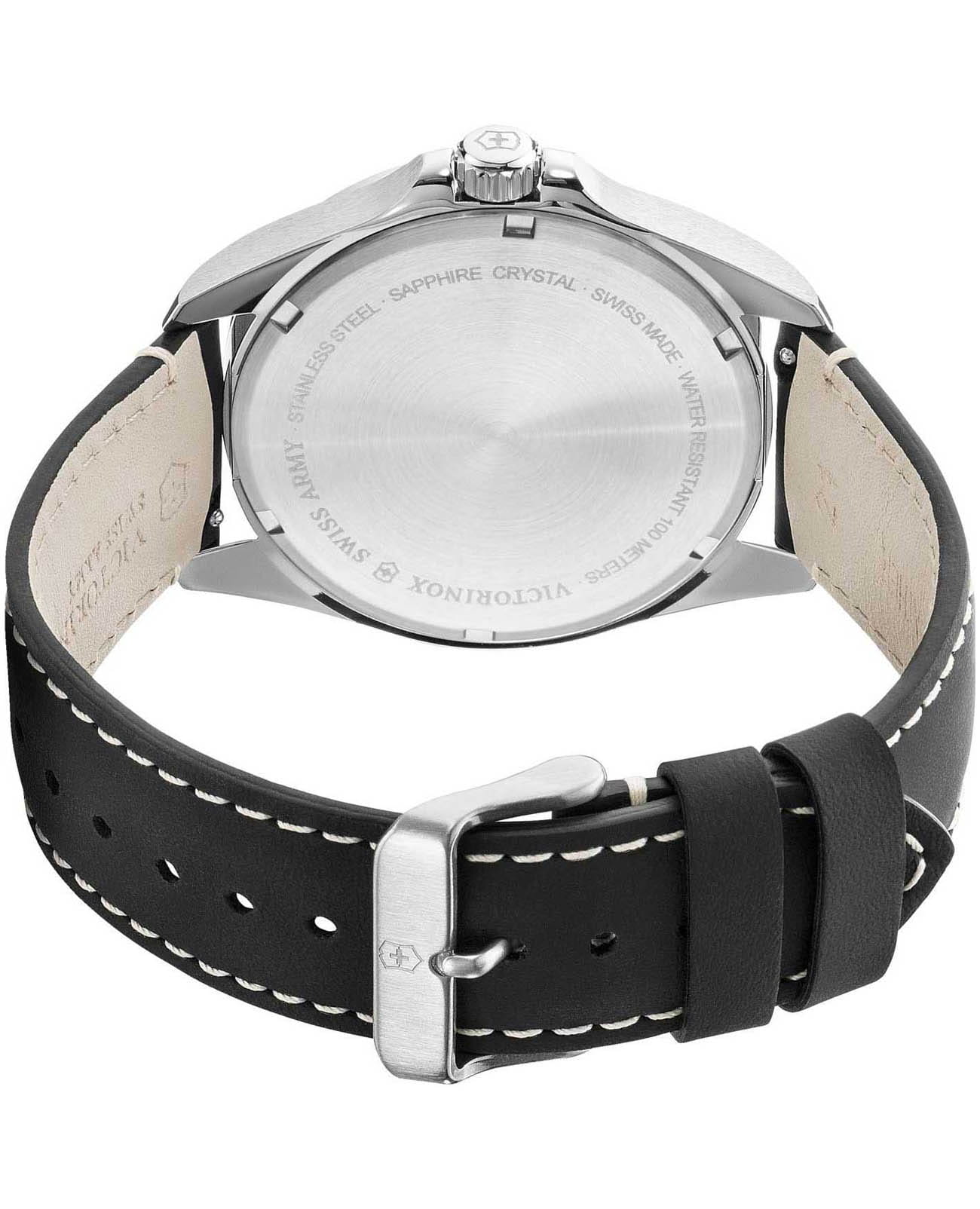 Мужские швейцарские часы Victorinox Fieldforce GMT 241895 с надёжным кварцевым механизмом. Сапфировое стеклоСапфировое стеклоПрочный и надёжный материал из кристалла сапфира синтетического происхождения, характеризующийся особой твёрдостью и устойчивостью к царапинам и повреждениям. с трёхслойным антибликовым покрытием. Корпус часов выполнен из нержавеющей стали 316L. Практичный кожаный ремешок на стандартной застёжке. Влагозащита: 100 метров, позволит плавать, нырять и заниматься другими водными видами спорта. Окошко даты и дня недели находится в положении 3 часа. Стрелки и метки с люминесцентным покрытиемЛюминесцентное покрытиеПозволяет считывать показания времени в темноте. Производители наносят на стрелки, часовые индексы, безель или поверхность циферблата светонакопительный состав, дающий холодное свечение.. Второй часовой поясВторой часовой поясФункция, позволяющая отображать время двух часовых поясов одновременно..