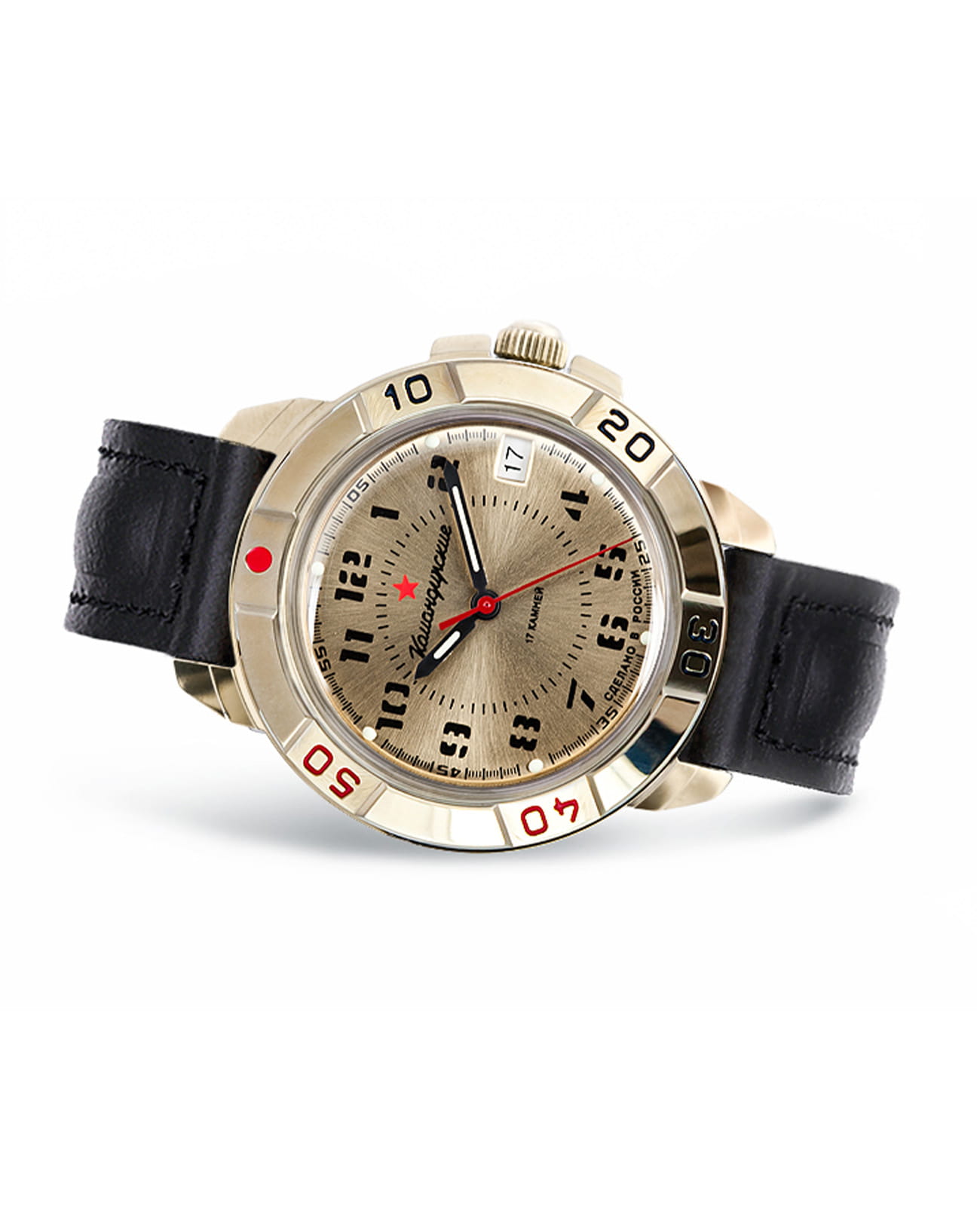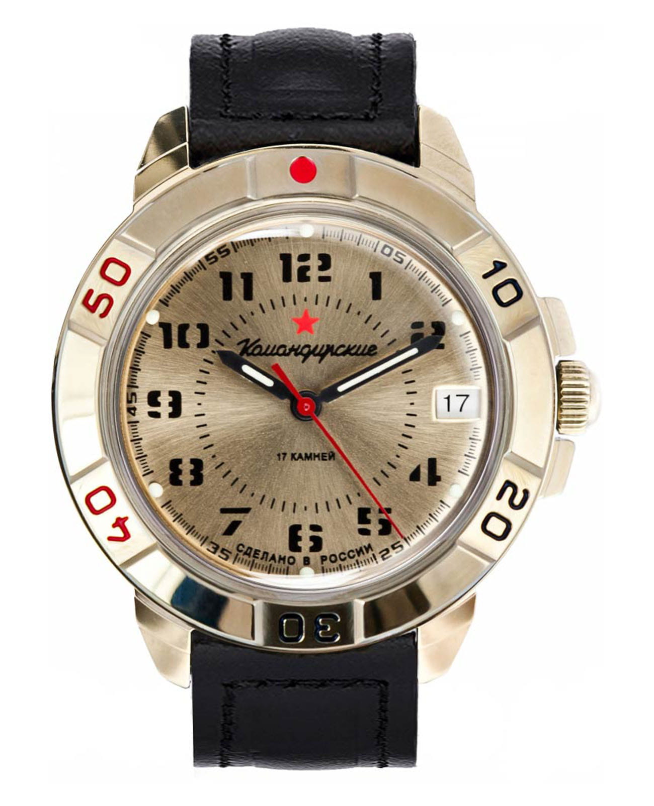 Механические часы Восток Командирские 439121 с гарантией. Часы с обновленным дизайном циферблата. Российские часы с историей. Командирские Классика. В механизме 17 камней. Запас хода 36 часов. Противоударное устройство оси баланса. Вращающийся безель. Завинчивающаяся заводная головка с защитой.
