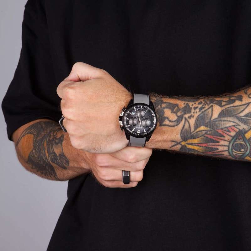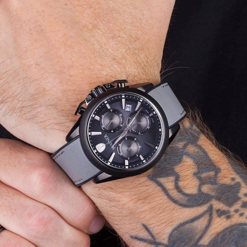 Мужские кварцевые часы-хронографХронографФункция позволяет измерять отрезки времени с особой точностью: часы, минуты, секунды. Верным признаком хронографа является наличие на циферблате 3 дополнительных окошек-счётчиков. с секундомеромСекундомерСекундоме́р — прибор, способный измерять интервалы времени с точностью до долей секунды. Wainer WA.16101-B сочетает элегантный дизайн и высокое качество исполнения. Корпус выполнен из нержавеющей стали с PVD-покрытиемPVDУльтратонкое покрытие наносится в технике вакуумного напыления, сочетает в себе нитрид титана особой прочности со слоем золота или оксида хрома. Несёт в себе декоративную или защитную функцию. черного цвета, диаметром 44 мм и толщиной 11 мм, обеспечивает прочность и долговечность. Циферблат с метками в виде штрихов выполнен по технологии Sunray (солнечные лучи) и украшен фирменным логотипом Wainer. Сапфировое стеклоСапфировое стеклоПрочный и надёжный материал из кристалла сапфира синтетического происхождения, характеризующийся особой твёрдостью и устойчивостью к царапинам и повреждениям. защищает дисплей от царапин и механических повреждений. Секундная стрелка на конце декорирована логотипом бренда - буквой W. Окошко даты находится в положении между отметками 4 и 5 часов. Стрелки с люминесцентным покрытиемЛюминесцентное покрытиеПозволяет считывать показания времени в темноте. Производители наносят на стрелки, часовые индексы, безель или поверхность циферблата светонакопительный состав, дающий холодное свечение., улучшая читаемость в условиях недостаточного освещения. Кожаный ремешок на силиконовой основе и стандартной застёжкой обеспечивает комфортное ношение. Водонепроницаемость до 100 метров делает модель подходящей для плавания и активного образа жизни. Wainer — это стильный и надежный аксессуар для тех, кто ценит швейцарское качество и современные технологии.