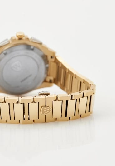 Модель Wainer WA.19401-F сочетает элегантность, швейцарское качество и современный дизайн. Корпус диаметром 43 мм выполнен из нержавеющей стали 316L с золотистым PVD-покрытиемPVDУльтратонкое покрытие наносится в технике вакуумного напыления, сочетает в себе нитрид титана особой прочности со слоем золота или оксида хрома. Несёт в себе декоративную или защитную функцию., придающим часам стильный и современный вид. Циферблат оформлен в классическом стиле с лаконичными часовыми метками, а сапфировое стеклоСапфировое стеклоПрочный и надёжный материал из кристалла сапфира синтетического происхождения, характеризующийся особой твёрдостью и устойчивостью к царапинам и повреждениям. защищает дисплей от царапин и механических повреждений. Часы оснащены точным кварцевым механизмом, обеспечивающим надежность и стабильность хода. Браслет из нержавеющей стали с золотистым PVD-покрытиемPVDУльтратонкое покрытие наносится в технике вакуумного напыления, сочетает в себе нитрид титана особой прочности со слоем золота или оксида хрома. Несёт в себе декоративную или защитную функцию. гарантирует комфортное ношение. Водонепроницаемость до 50 метров защищает часы от случайных брызг. Wainer WA.19401-F — это стильный аксессуар для мужчин, ценящих швейцарскую точность, современный стиль и надежность.