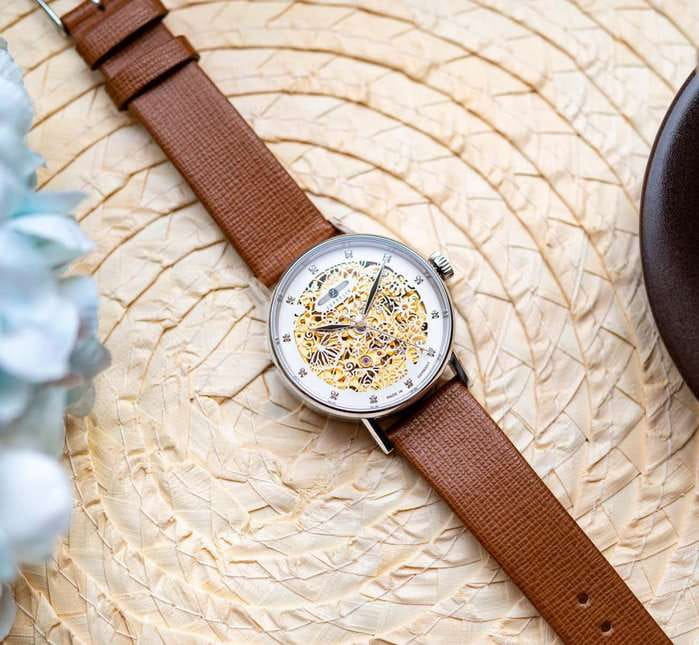 Женские наручные часы Zeppelin Princess of the Sky 7461-5 сочетают в себе элегантный дизайн и надежность автоматического механизма. Модель обладает круглым корпусом диаметром 36 мм, изготовленным из нержавеющей стали, что обеспечивает высокую устойчивость к внешним воздействиям. Браслет выполнен из коричневой кожи с классической застежкой, гарантирующей комфортное ношение и стильный внешний вид. Циферблат украшен двенадцатью камнями Swarovski, добавляющими особый шарм и элегантность. Для защиты используется минеральное стеклоМинеральное стеклоМинеральное стекло представляет собой искусственно выращенный минерал кварца. Такое стекло отличается особой устойчивостью к повреждениям и царапинам. Уступает по некоторым качествам сапфировому стеклу. с антибликовое покрытиеАнтибликовое покрытиеСлой оксида металла в 0,13-0,3 микрон, благодаря которому стекло часов не бликует и не отражает свет. Антибликовое покрытие уменьшает отражение света в 10 раз, обеспечивая отличную читаемость показателей циферблата., обеспечивающее защиту от царапин. Часы работают на автоматическом механизме, который не требует замены батареек и заряжается за счет движения руки. Водонепроницаемость часов достигает 5 атмосфер (50 метров), что позволяет использовать их в повседневной жизни, но не рекомендуется для плавания или дайвинга.
